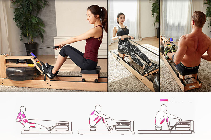 There is not much strength required to use the water resistance rowing machine to exercise. If you feel that the resistance is not enough, you can increase the difficulty by adding water in the water tank or speeding up the training exercise. The force ratio of the whole movement accounts for 60% in the kicking link, 30% in the upper limb pulling link, and 10% under the body to maintain the body’s tightness, especially in the process of shifting the center of gravity from forward to backward. .